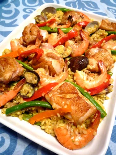 ジューシーチキンの豪華パエリア!! 2009年06月18日 今日はスペイン料理!! 主人の大好きなチキンを使って ボリュームたっぷりのチキンのパエリア!! 海老が余っていたので 海老も入れて豪華に・・・。 フライパンで炒めて、 最後は耐熱皿に入れてオーブンで仕上げたので ジューシーチキンに お米の表面のカリカリが ...
