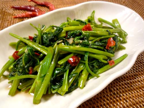 シャキシャキがたまらないタイ風空芯菜炒め! 2009年06月24日 先日のタイ風ゴーヤと豚肉のレッドカレー と一緒に作った空芯菜炒め。 茎の中が空洞になっていて 味がなじみやすく、 シャキシャキしていて 主人の大のお気に入りレシピです。 ピリカラ唐辛子とにんにく、タイの調味料 で炒めるだけ・・・。 タイ料理のもう1品にはか ...