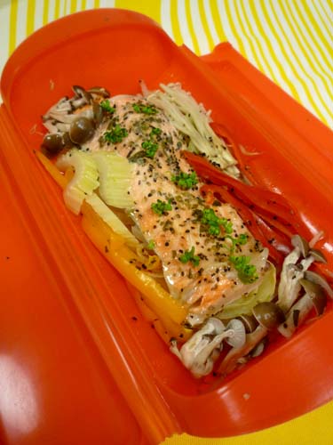ルクエ・スチームケースで野菜たっぷりハーブサーモン 2009年06月08日 先日主人の誕生日で インドカレーにチーズケーキに・・・と 食べ過ぎちゃったので・・・。 昨日はヘルシー体内リセット料理!! お気に入りのルクエ・スチームケースに たっぷりの野菜と、サーモンを入れ 今回はオレガノ&バジルのハーブとガーリックパウダーを ふりかか ...