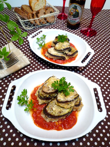 茄子バーグ☆冷めても柔らかオーブン仕立て!! 2010年07月15日 今日はイタリア料理!! スライスした茄子に牛乳&パン粉で柔らかなハンバーグタネを 挟んでオーブンで焼きました~!! チーズ風味のパン粉がカリカリ香ばしく、 中はとろける茄子にふんわり~冷めてもとっても柔らかなんです(^^♪ トマトソースに合わせていただきま ...