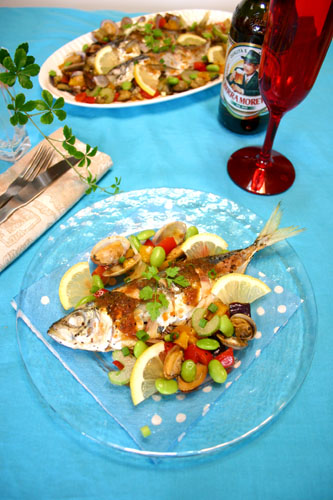 鯵の和風アクアパッツァ風☆焼き肉のタレおろしで簡単~!! 2010年07月30日 今日は夏のさっぱり魚料理!! 通常はにんにくやアンチョビ、白ワインなどで作る大好きなワクアパッツァ。 今回はモニターの宮殿のタレ「おろし×おろし」を使って・・・ 夏にピッタリのさっぱり和風のアクアパッツァ!! 今回は宮殿のタレおろし×おろしには たっぷり ...