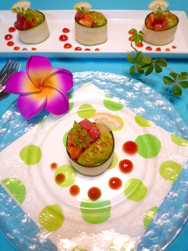 海鮮アボカド☆ズッキーニ巻き!! 2010年07月09日 今日は簡単パーティー前菜。 簡単シーフードカルパッチョにアボカドペーストを添えて・・・ ピーラーでスライスしたズッキーニでぐるっと巻きました!! カルパッチョにアボカドペーストが合う~!! クリーミーまろやかにいただけるのでお気に入りの組み合わせ(^^♪ 簡 ...