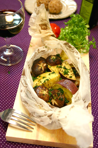 茸とさつまいものハーブバター紙包み焼き☆ 2011年02月24日 今日は野菜料理!! 小ぶりでかわいい原木しいたけが手に入ったので さつまいもと合わせてオーブンシートで紙包み焼きに・・(^^♪ バターとたっぷりパセリで香り豊か!! 椎茸がとってもジューシーさつまいもはほっくり・・・ バルサミコ酢をかけると味がしまっておいし ...