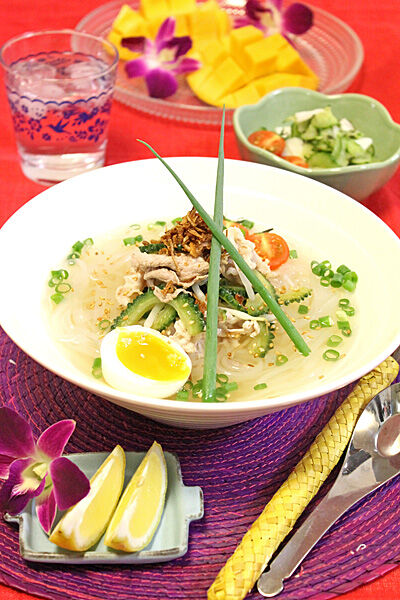 ゴーヤと豚しゃぶのベトナムフォー☆WeddingParty 2012年07月05日 今日はベトナム料理!! 主人のリクエストでベトナムフォ~!! ゴーヤ&豚肉&もやしたっぷり夏フォ~(^^♪ 1皿で栄養満点、スタミナ満点・・。 あっさり優しいお味なので息子にも大好評~!! ラーメンラーメンおいしい~~!!って騒いでいましたよ(^_^;) ゴー ...