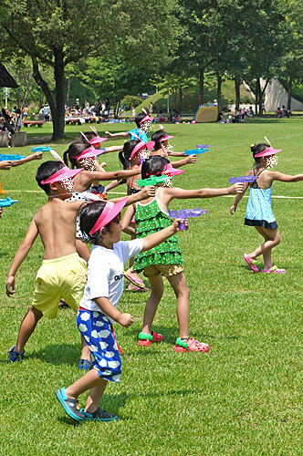 水鉄砲大会☆ 2012年07月30日 今日は先日の水鉄砲大会!! 幼稚園のお友達と子供の国で水鉄砲大会に参加してきました~!! ピシューピシュー!! 小学生の中に幼稚園生は息子達3人だけ・・。 勝負事が大好きな息子は大興奮(^^♪ 金魚すくいのようなような的がついたサンバイザーをして 違う色の的 ...