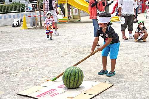人気イベント土曜ファンタジー☆撮影 2012年08月30日 今日は夏休みの幼稚園の人気イベント 土曜ファンタジー!! 夏の風物詩をたっぷり堪能させていただきましたよ~!! 楽しみにしていたスイカ割り!! 「こっちこっち~~もうちょっと後ろ~~」と白熱(^_^;) 息子はコン♪と当たったくらい・・ですが当たった~!!と嬉 ...