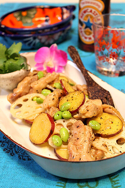 スティックチキンとさつまいものエスニック炒め☆ 2012年11月10日 今日はエスニック料理!! 旬のさつまいもとスティック状に切ったぷりぷりチキン、 パリパリレンコンがおいしい秋のエスニック炒め(^^♪ ナンプラーと胡麻油でさっぱりだけどコクのある炒め物。 スティック状に切ったチキンは味がしみ込みやすくて 子供にも食べやすい ...