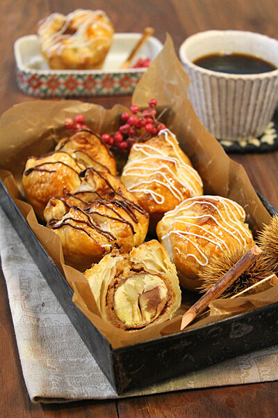 栗の渋皮煮入りマロンパイ☆ラッピング~ 2012年11月09日 今日は栗スイーツ!! 先日のストウブで作った栗の渋皮煮をごろっと丸ごと閉じ込めた サクサクのマロンパイ!! マロンとくるみのクリームも一緒に包みこんだ 栗満喫スイーツです(^^♪ 昨年も作りましたが、今年は成形をちょっと変えて・・・。 栗の粒がとっても大きい ...