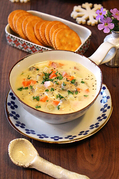 濃厚クラムチャウダー☆ 2012年12月14日 今日はあったか濃厚スープクラムチャウダー!! 私のクラムチャウダーの思い出はやっぱりサンフランシスコ(^^♪ お友達同士で初めての海外旅行で訪れたアメリカ西海岸!! ロス→ラスベガス→サンフランシスコと最後の都市で 大きなサワーブレッドがくり抜かれてたっぷ ...