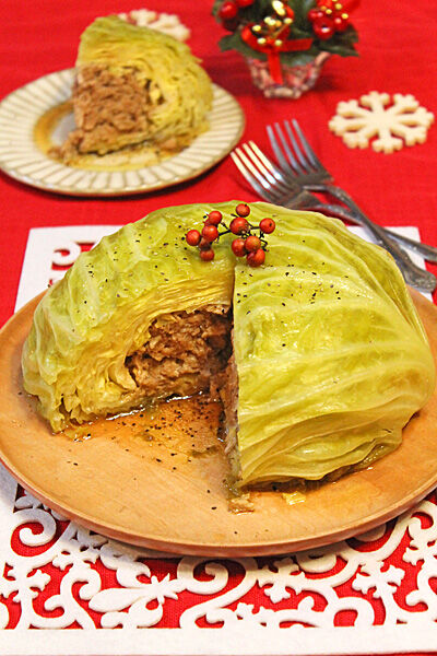 丸ごとキャベツの肉詰め☆ストウブ蒸し 2012年12月18日 今日は丸ごとキャベツ料理!! キャベツの芯をくりぬいて・・ 味付けした豚こま肉を詰め込んでストウブで蒸しました~!! ド~ンとテーブルに出すと迫力あるわ~(^_^;) ケーキのようにカットする肉汁がじゅわ~~!! キャベツがとってもあま~~~~くておいしかった ...