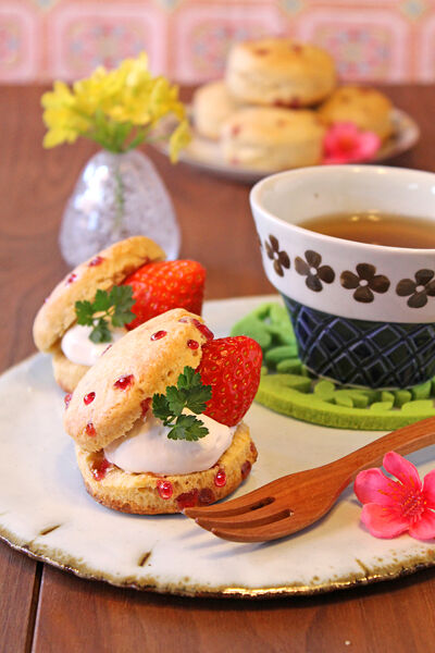 バター不使用☆粒ジャム苺ヨーグルトスコーン!! 2013年02月27日 今日はおうちカフェ!! 粒ジャムストロベリーを使って・・ ドットがかわいい外サクサク中しっとりスコーン!! バター不使用で生クリームとヨーグルトを使って さっくり軽い感じのスコーンに仕上げましたよ(^^♪ バター不使用なので混ぜ合わせるのも簡単!! ワンボー ...