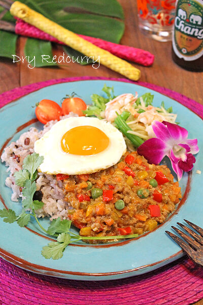 タイ風カフェごはん☆ドライレッドカレープレート 2013年11月27日 今日は大好きタイ料理!! 大好きなレッドカレーを今回はドライカレーにしてみました~!! 挽肉にたっぷり野菜を加えて・・ レッドカレーペーストやナンプラー、ココナッツミルクなどを加えて 煮込んだタイ風ドライカレー!! タイ米で食べたいところですが、なかなか ...