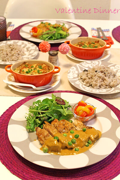 バレンタインにガーリックチキンのカレークリームソース 2014年02月17日 今日は1日遅れのバレンタインディナ~!! と言っても大雪の翌日。 まだヒョウ??かのような雪が降っていたので買い出しはあきらめ・・ 冷蔵庫の残りもので(^_^;) そういう日に限って冷蔵庫ガラガラなのよね~(^^♪ ってことでささやかに。 しかも息子のリクエストは ...