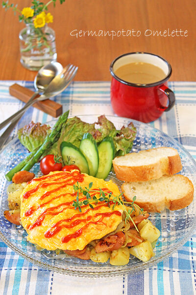 新じゃがでとろとろ半熟卵のカレージャーマンポテトオムレツ 2014年05月29日 今日はだいぶ前の新じゃが&新玉ねぎ料理!! ソーセージと新じゃがいも、新玉ねぎをカレー風味で炒めた ジャーマンポテトに・・・ 半熟のオムレツを乗せた半熟卵のカレージャーマンポテトオムレツ!! 包まず、半熟卵を乗せるだけなので簡単~!! ほくほくのジャーマ ...