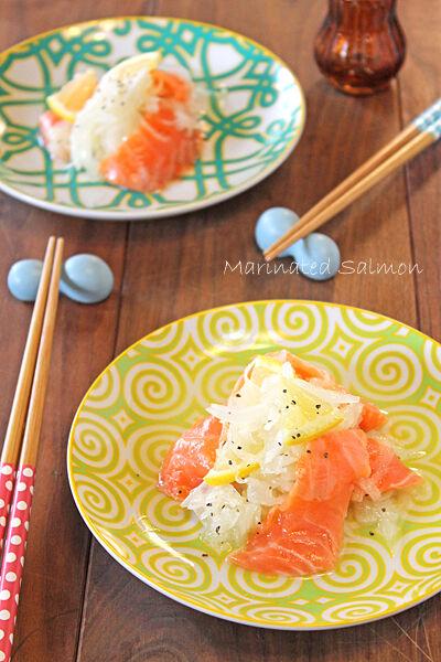 新玉ねぎでさっぱりサーモンマリネ☆ 2014年05月19日 今日は大好きサーモンマリネ!! 昔からお正月に北海道の親戚の方が送ってくれるド~ンと鮭1本で お婆ちゃんが作ってくれるサーモンのマリネが大好きでした~!! 今はサーモンのお刺身を使って、新玉ねぎの季節になると 待ってました~!!と必ず作るサーモンマリネ(^^ ...