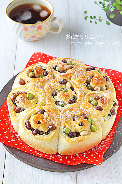 ふんわりお花ちぎり豆パン☆ 2015年09月04日 今日はちぎりパン~!! ホールケーキ型で焼いた・・・ お花のようなちぎり豆パン! はちみつ入りのふわふわ生地に、 かのこ豆をたっぷり練りこんだ お豆の甘さがおいしいしっとり豆パン! レシピはこちら・・・・ * ふんわりお花のちぎり豆パン☆ by ぱお 写真 ...