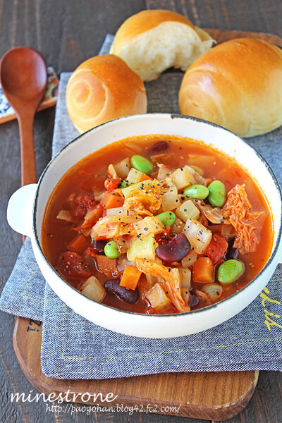 白菜と大根のミネストローネ☆冬の常備菜 2015年12月02日 今日は白菜&大根消費レシピ~!! 野菜不足を感じると必ず食べたくなる・・ 野菜たっぷりミネストローネ!! 今回は冬野菜たっぷり~ 白菜、大根をメインにお豆をたっぷり入れた ミネストローネにしました~。 たっぷり作り置きしておくと、朝ごはんにも大活躍。 ベ ...