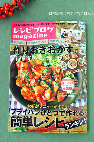レシピブログマガジン秋号発売のお知らせ! 2016年09月15日 こんばんは~!今日はお知らせをさせてくださいね。十五夜に失礼いたします~(^^♪レシピブログマガジン秋号が発売となりました~!!お知らせが遅くなっちゃいましたが・・(^^♪私もフライパンで作る秋おかずを4品紹介させていただきました~!!詳しい内容はこちら・・・と ...