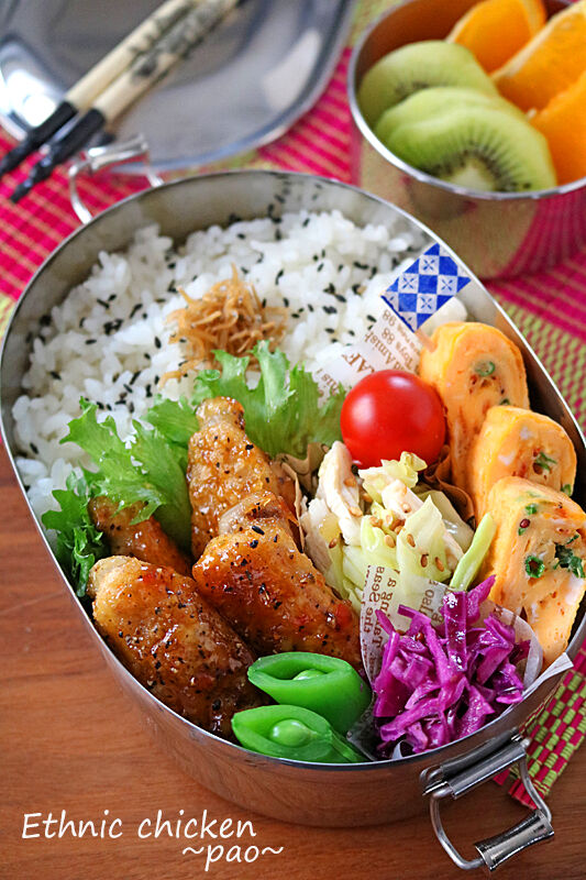 スイートチリとポン酢で簡単!甘辛エスニックチキン弁当 2018年01月22日 こんにちは。今日はお弁当です~♪漬け込みいらずのフライパンでパパっと簡単少ない調味料で出来るエスニックチキンのお弁当です~エスニックチキン弁当●エスニックスティックチキン●桜エビとネギの卵焼き●ささみとキャベツの中華ドレッシングマリネ●紫キャベツラぺ●ス ...