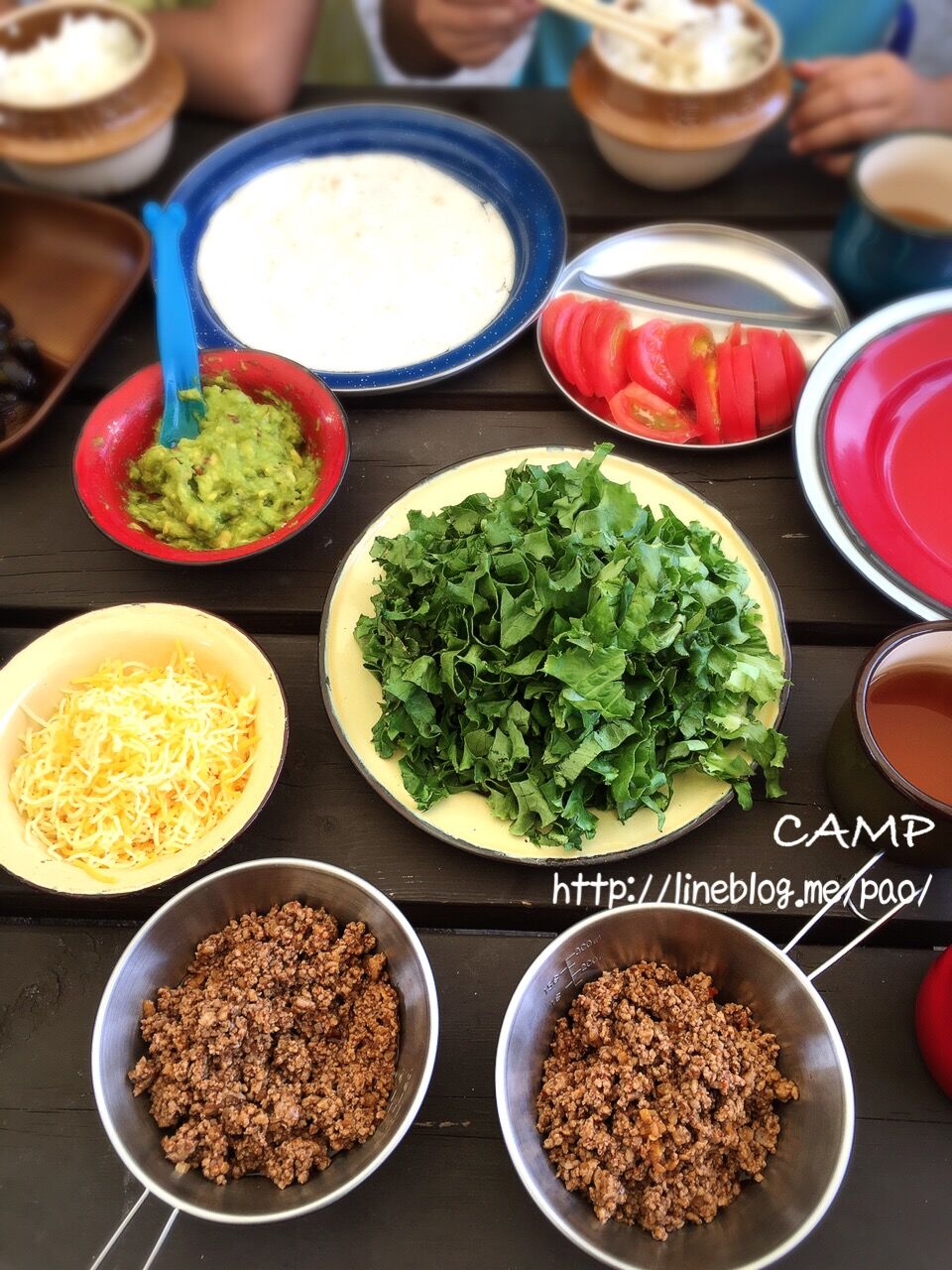 みんなでワイワイ楽しむキャンプごはん続き♪ 2018年08月14日 こんにちは。今日はキャンプごはんの続きです♪2日目のお昼ごはんは・・・みんなでタコスを作りました~~!!ひき肉を小鍋で炒めて油をキッチンペーパーでふき取り、タコミートスパイスと水で煮込んでタコミートの完成~!!アボカドはスプーンでつぶして、ワカモーレスパ ...