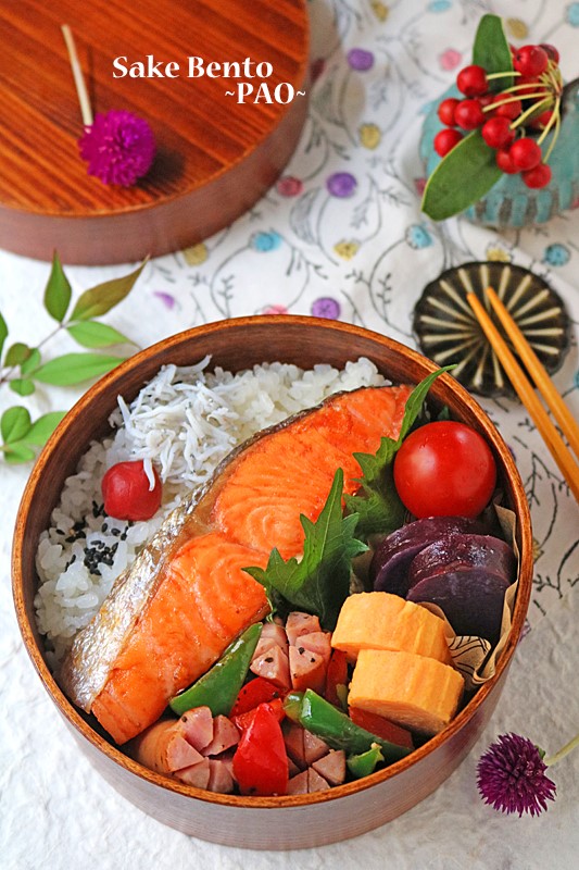 塩鮭グリルとソーセージ&カラフルピーマンのわっぱ弁当♪ 2018年12月16日 こんばんは。今日はだいぶ前のお弁当~♪定番塩鮭わっぱ弁当~♪やっぱりわっぱには鮭が合いますね~(^^♪鮭は魚焼きグリルで焼くだけなので朝楽です!困った時は鮭弁当ですね~鮭をグリルで焼いている間にソーセージとピーマンを炒めて・・そのほかは作りおきです~♪メニュ ...