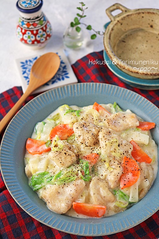 鶏むね肉がもっちり柔らか♪白菜と鶏むね肉のクリーム煮♪ 2020年02月25日 こんにちは~!!今日は鶏むね肉であったかレシピ~!またまた寒さ逆戻りですね。そんな日は白菜と鶏むね肉であったかクリーム煮はいかがですか~??ぱさつきがちな鶏むね肉は野菜を煮込んでいるうちに別のフライパンで焼いてから加えるので、加熱しすぎる事なくもっちり柔 ...