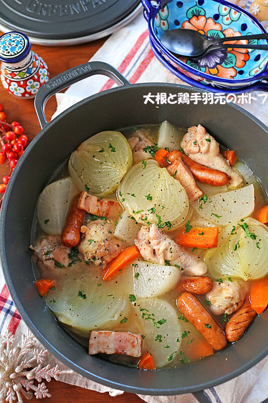 大根たっぷり♪鶏手羽元とゴロゴロ野菜のあったかポトフ♪ 2021年01月04日 こんにちは~!!お正月で食べすぎた後は野菜たっぷりあったかポトフはいかがですか~??大根消費レシピ!!大根たっぷりポトフです!!大根って洋風でも美味しいですよね~。お肉やベーコンのうま味がたっぷり浸み込んだ大根がじゅわ~っと美味しくて何個でもいけそう・・( ...