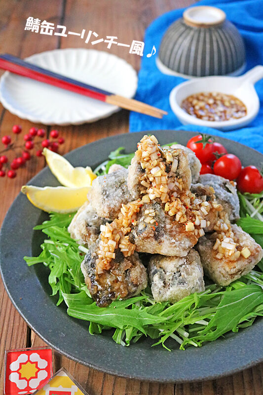 さば缶でお手軽竜田揚げ♪鯖缶のユーリンチー風♪ 2021年02月18日 こんにちは~!!今日はお手軽缶詰レシピ♪鯖缶で竜田揚げ~水気をきった鯖缶に片栗粉をまぶして揚げるだけなので簡単!!下味いらず♪あっさりとしたネギダレがサバの臭みを消してくれるので相性抜群!!鯖缶のユーリンチー風です材料(2~3人分)鯖缶・・2缶片栗粉・・適 ...