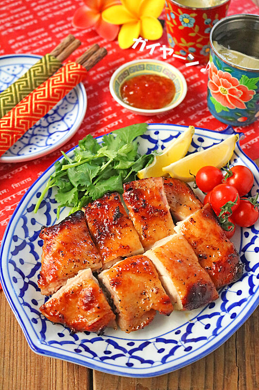 漬けて焼くだけ簡単♪家族が大好き鶏肉料理!ガイヤーン♪ 2021年02月17日 こんにちは~!今日は大好き鶏肉料理♪漬けて焼くだけ簡単♪ジューシー柔らかなガイヤーンです!!タイ風焼き鳥ガイヤーン!!ナンプラーベースのタレに1時間つけてオーブンで焼くだけなので簡単!!こんがり香ばしさが美味しいタイ風ガイヤーンです♪材料鶏もも肉・・2枚※ ...