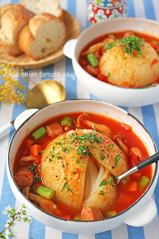 ほったらかしで簡単!まるごと新玉ねぎのとろとろトマトスープ♪ 2021年02月26日 こんにちは~!今日は炊飯器でほったらかし~甘くて美味しい丸ごと新玉ねぎレシピ♪いよいよ新玉ねぎの美味しい季節ですね。丸ごと新玉ねぎのスープはお気に入りで毎年定番レシピ♪今回はトマト風味にしてみました~!!炊飯器に入れるだけなので簡単!スイッチ押すまで10 ...