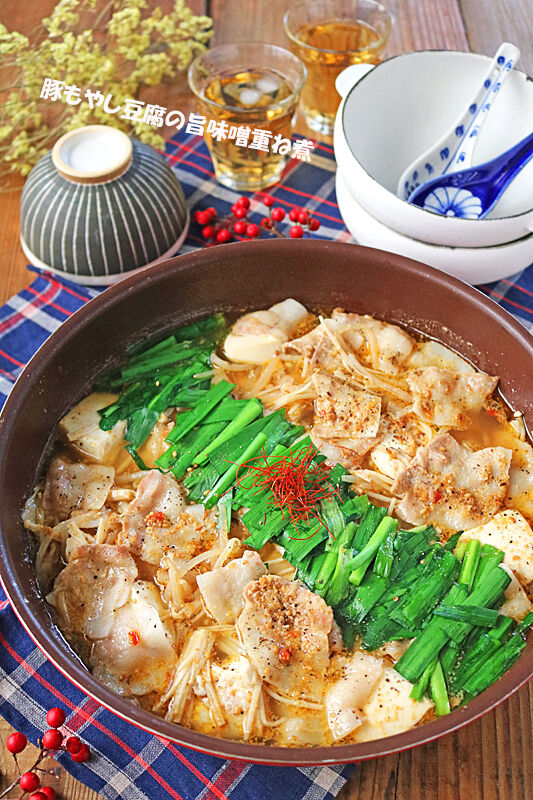 簡単節約!重ねてほったらかし!豚肉もやし豆腐のごま味噌重ね煮 2021年02月19日 こんにちは~!今日は材料重ねてほったからし~の簡単節約!あつあつ豚肉×豆腐レシピ!!フライパンに、豚肉、豆腐、もやし、えのき、ニラを重ねて、ゴマ味噌風味のスープを注いてほったらかし~で簡単あつあつゴマ味噌重ね煮です野菜たっぷりお豆腐も入ってヘルシー!途中 ...