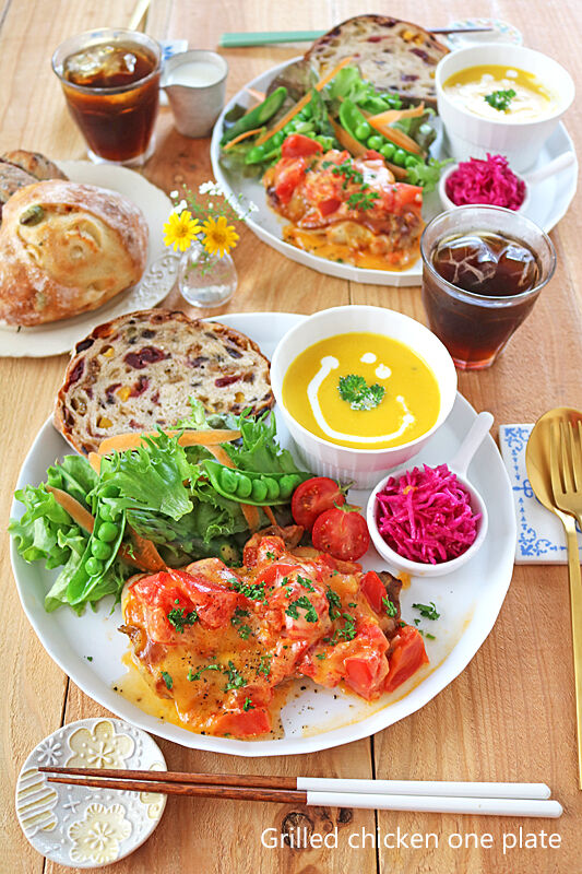 ワンプレートごはん♪ワンパンチキンのフレッシュトマトチーズ焼き 2021年05月16日 こんにちは~!!休日におすすめワンプレートごはん~!!ワンプレートは洗い物が少なくて楽ちんですね(^^♪フライパンで簡単チキンのフレッシュトマトチーズ焼き♪がメインのワンプレートランチ♪チキンのフレッシュトマトチーズ焼き人参カレー豆乳ポタージュ紫キャベツのラ ...