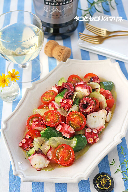 切って和えるだけ簡単おつまみ!タコとセロリの柚子胡椒マリネ 2021年05月28日 こんにちは~!!今日はおうちバル!切って和えるだけの簡単レシピ~タコとセロリの柚子胡椒マリネです~♪タコとセロリにミニトマト、きゅうりを加えてカラフルなマリネ。味付けはマリネ液に柚子胡椒を加えると爽やかでグーンと香がよくなり、味が引き締まります。以前に柚 ...