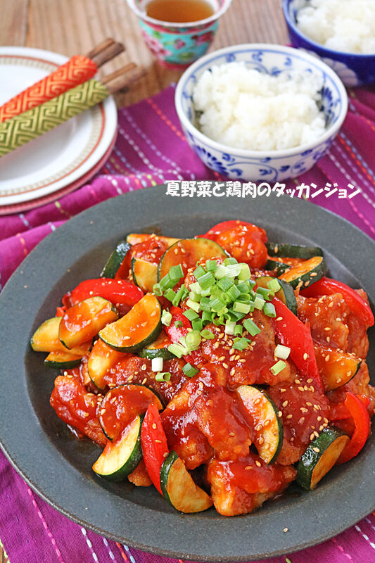 鶏肉と夏野菜の韓国風旨辛チキンタッカンジョン♪ 2021年08月16日 こんにちは~!今日は旨辛鶏肉料理~♪夏野菜を加えた・・韓国風旨辛チキンタッカンジョン♪ケチャップにコチュジャンを加えた甘辛なタレがお肉にも夏野菜にもピッタリ!お肉はふんわり柔らか♪シャキっと夏野菜の食感がアクセントになったごはんがすすむ・・韓国旨辛鶏肉レ ...