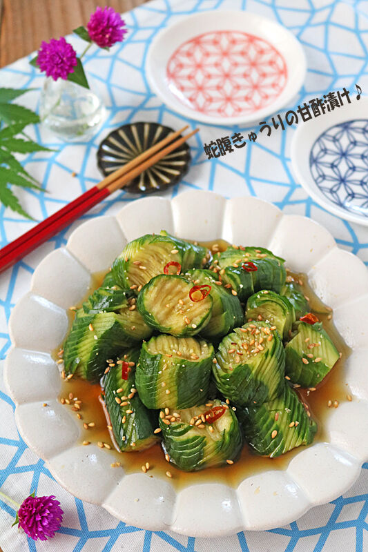 時短で夏の作り置き♪蛇腹きゅうりの甘酢漬け&はまったお菓子 2021年08月11日 こんにちは~!!今日は時短のきゅうり消費レシピ~!!定番美味しい・・蛇腹きゅうりの甘酢漬け♪息子はきゅうりの甘酢漬けが大好物!!部活終わりに食べたいそうで・・(^^♪きゅうりはみずみずしくて夏にピッタリですね。今日は細かく切目を入れた蛇腹切りで漬け時間短縮♪ ...