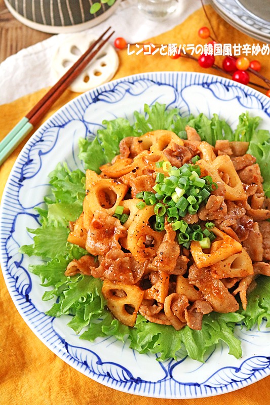 作り置き秋おかず!レンコンと豚バラの韓国風甘辛炒め 2021年09月25日 こんばんは~!!今日はフライパンでパパっとスタミナレシピ!レンコン×豚バラで簡単秋おかず♪シャキシャキれんこんと豚バラの韓国風甘辛炒め豚バラのうま味をすった、シャキシャキのれんこんがやみつきです!!コチュジャン入りの甘辛なタレがお肉にもれんこんにも相性抜 ...