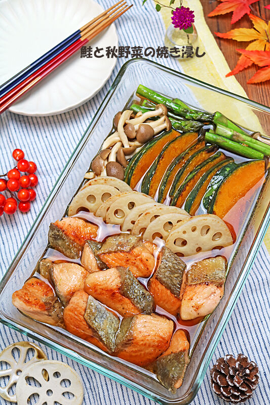 めんつゆで簡単!ふっくら秋鮭と秋野菜の焼き浸し! 2021年09月30日 こんにちは~!!今日は秋野菜たっぷり♪ヘルシーな魚レシピです~!!めんつゆで簡単!鮭と秋野菜の焼き浸し旬の秋鮭と秋野菜をフライパンで揚げずに焼いて、めんつゆに漬けるだけなので簡単!!鮭は片栗粉をまぶして焼いてから漬けるとふっくら仕上がります!!レンコンの ...