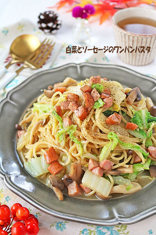 たっぷり白菜とソーセージのワンパンパスタ♪ 2021年10月25日 こんにちは~!!今日はフライパン1つで簡単!白菜たっぷりパスタです~♪白菜とソーセージのワンパンパスタソーセージは荒く刻んでボロネーゼ風(^^♪ソーセージときのこのうま味、白菜の甘さが美味しい旬のパスタ!!パスタは別茹でせずにフライパン1つで作るので簡単!に ...