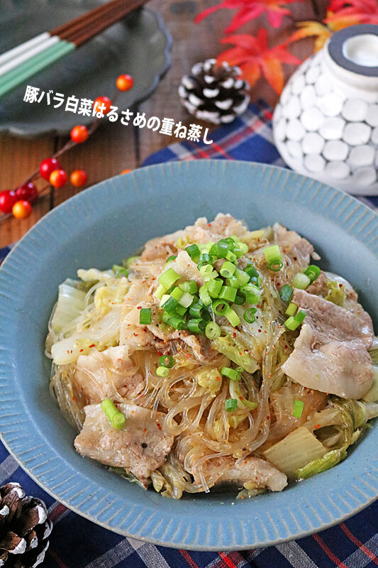 材料重ねて10分放置で簡単!豚バラ白菜とはるさめの重ね煮♪ 2021年10月28日 こんばんは~!!今日は定番美味しい・・白菜たっぷりレシピ~!!白菜1/4個ペロリ!豚バラ白菜とはるさめの重ね煮材料重ねて10分ほったらかし♪なので簡単!乾燥春雨は戻さずにそのまま加えて、白菜の水分で戻すのでべっちゃりせず、つるんとのど越しが良いです。豚バラの ...