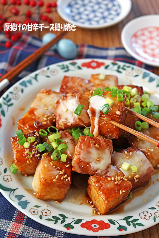 あと1品おかず♪とろ~りこくうま!厚揚げの甘辛チーズ焼き 2022年01月20日 こんにちは~!今日はあと一品おかずが足りないな~って時のおかずやおつまみに♪厚揚げの甘辛レシピです~とろ~りこくうま!厚揚げの甘辛チーズ焼き一口サイズにカットした厚揚げを焼いて、甘辛ダレで照り焼きにして、チーズをかけたとろ~りチーズでまろやかな厚揚げの甘 ...