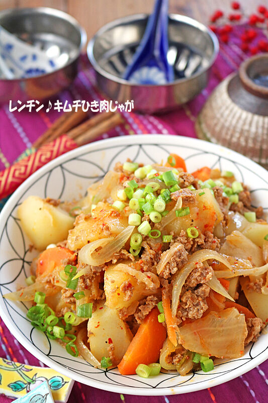 材料混ぜてレンジで簡単!旨辛キムチひき肉じゃが! 2022年01月24日 こんばんは~!今日はレンジで簡単!時短キムチとひき肉で作るレンジ肉じゃが~♪材料混ぜてレンジで簡単!キムチひき肉じゃが!ひき肉とうまみたっぷりのキムチで味がしっかりと決まるキムチひき肉じゃが!材料を混ぜてレンジで10分なので簡単!ひき肉が全体に絡むので、 ...