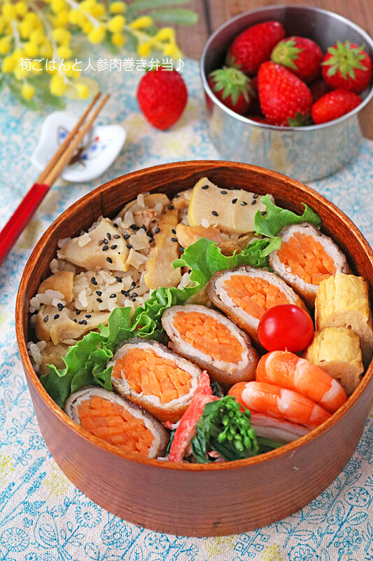 簡単人参の肉巻き照り焼き&筍ごはん弁当♪ 2022年04月20日 こんにちは~!きょうは今年初の筍ごはんでまたまた野菜の肉巻き弁当~♪やっぱりお弁当に筍ごはんは嬉しいですね(^^♪またまたプチダイエット中の主人に、野菜を巻いた、お肉少な目野菜たっぷりの肉巻きです~♪今回は人参の肉巻き!!千切り人参を巻いて、照り焼きにするだ ...