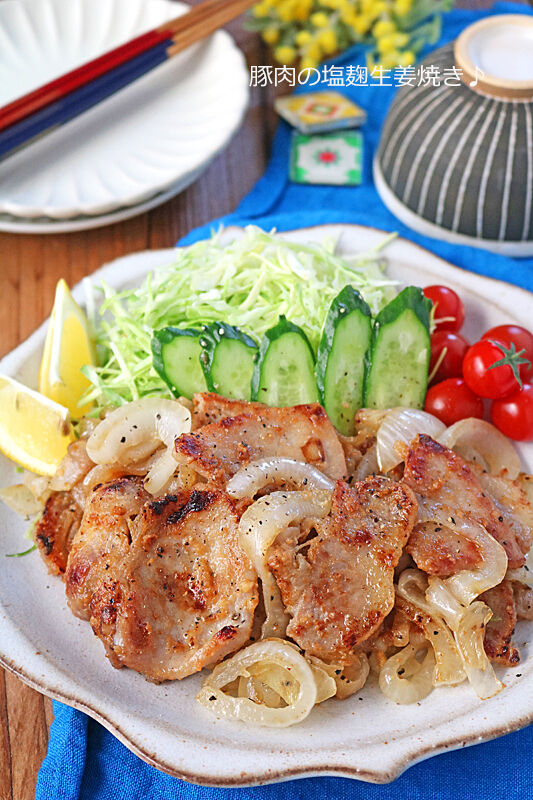 お肉柔らか~新玉ねぎと豚肉の塩麹生姜焼き♪お弁当やどんぶりにも 2022年04月08日 こんばんは~!今日は生姜焼き用お肉が柔らか~!ごはんがすすむスタミナおかず(^^♪お肉柔らか~豚肉の塩麹生姜焼き♪時々生姜焼き用のお肉が特売になりますね(^^♪塩麹ベースの味噌だれに漬け込んでから焼くとお肉がシューシーで柔らかに仕上ります!!生姜の香りと塩こう ...