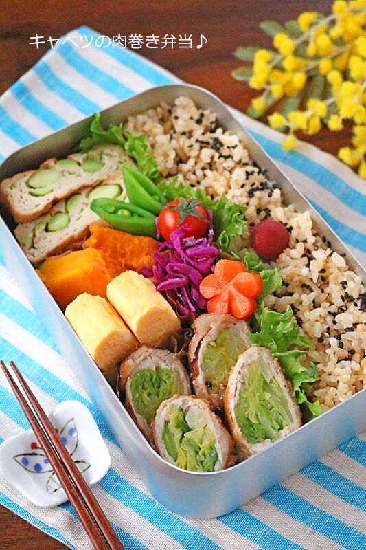 春キャベツの肉巻き照り焼き弁当♪ 2022年04月13日 こんばんは~!今日は旬のキャベツがメインのお弁当です~!キャベツの肉巻き照り焼き弁当!!またまた野菜をお肉で巻いた、肉巻きです~♪今回は春キャベツ!甘くて美味しいですね~キャベツの肉巻きとだし巻き卵以外は作り置き~!作り置きがあると便利ですね。玄米だと茶 ...