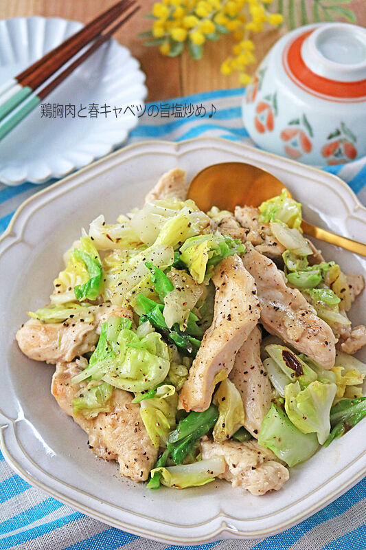 柔らか鶏胸肉と春キャベツのにんにく旨塩炒め♪ 2022年04月17日 こんばんは~!今日はフライパンでパパっと旬の春キャベツと鶏胸肉でヘルシーレシピ♪柔らか鶏胸肉と春キャベツのにんにく旨塩炒め♪フライパンでパパっと簡単春キャベツレシピ♪叩いてスティック状に切った鶏むね肉は下味と片栗粉をまぶして焼いて、一旦取り出しておくので ...