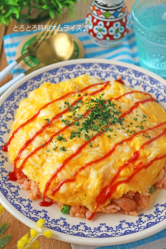 ケチャップライスはレンジで簡単!包まないとろとろ半熟オムライス 2022年04月07日 こんにちは~!今日は子供が喜ぶ簡単お昼ご飯~♪ケチャップライスはレンジで簡単!包まないとろとろ半熟オムライスケチャップライスは材料混ぜ合わせてレンジでチン♪レンジ加熱中に同時進行で卵が作れるので時短になります♪ケチャップライスはミックスベジタブルとソーセ ...