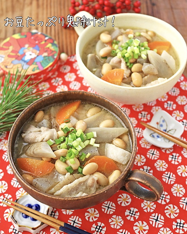 節分の恵方巻のお供に♪お豆たっぷり鬼除け汁! 2024年01月30日 こんにちは~!今日は節分におすすめの鬼除け汁~!!お野菜たっぷり!お豆たっぷりの具だくさんあったか汁♪厄除けの意味を持つお豆を加えた豚汁やけんちん汁を最近は「鬼除け汁」や「節分汁」と呼ばれているそうです。今日は具だくさん!塩麹をまぶした豚バラ肉でコクをプ ...