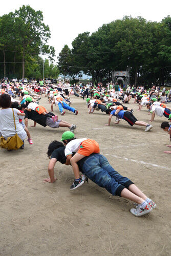 1年ごとに縄跳び大会と腕立て大会が行われます。