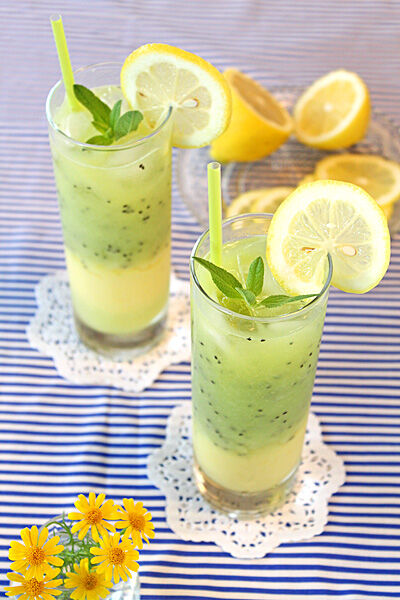 パイナップルスムージーにすりおろしキウイを重ねて・・