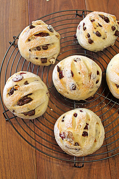 クランベリーと胡桃を練りこんだ生地に、